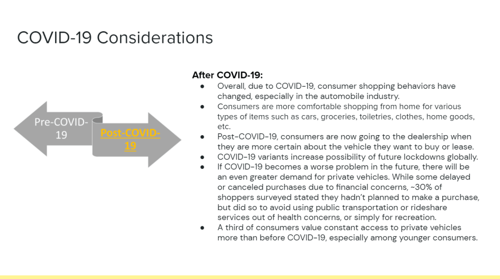 - Ability to purchase a car quickly without having to interact with anyone physically