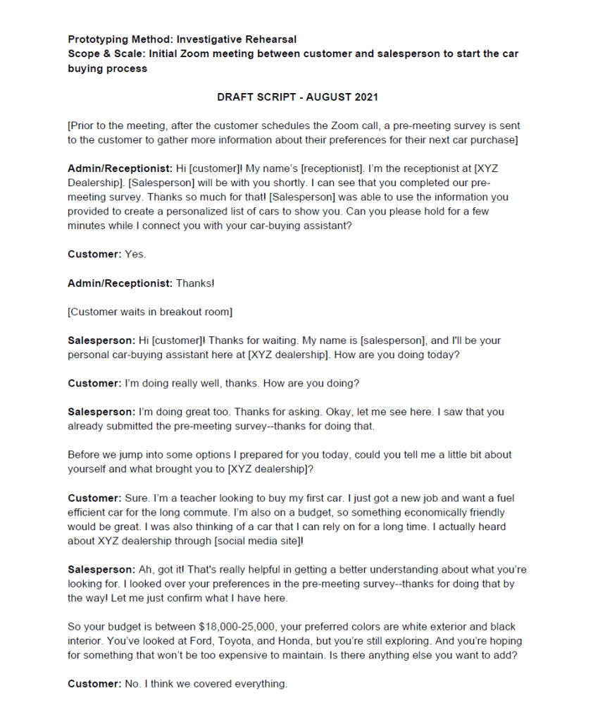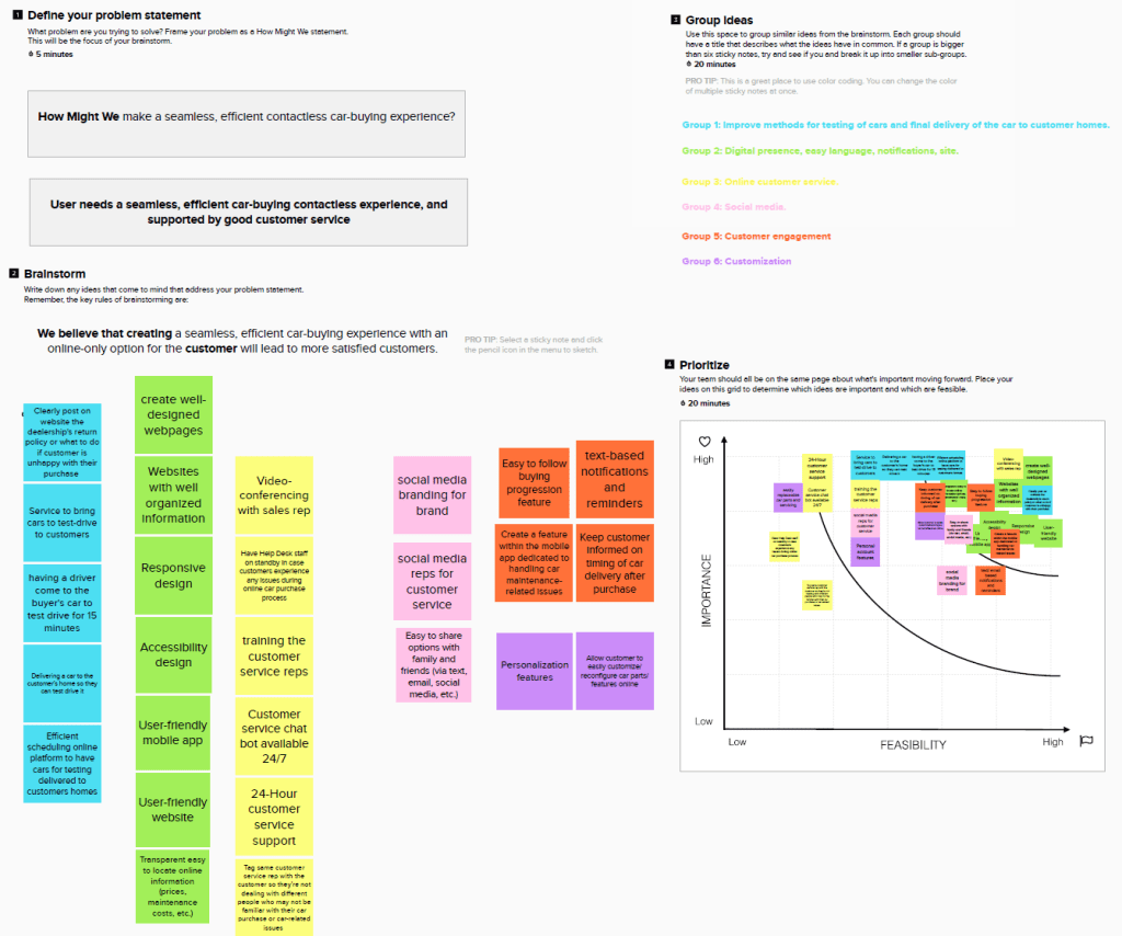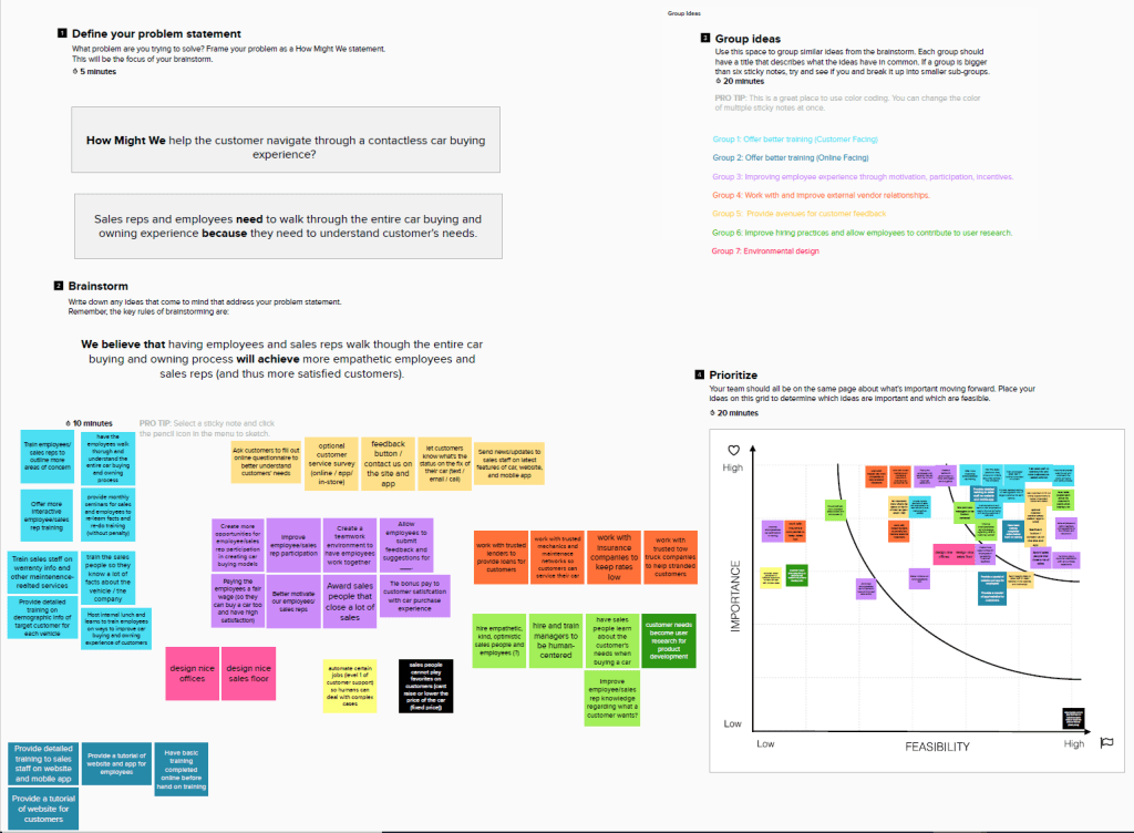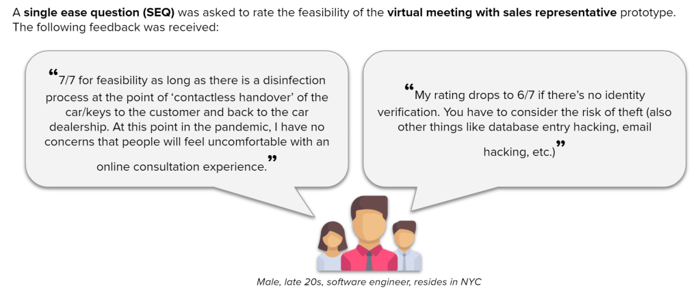 - 5 prototypes (i.e., Expanded Social Media Channels for Car Dealerships, Virtual Meeting with Salesperson, Road to Car Ownership Portal, Try-at-Home Program, and Customer Feedback Submission)