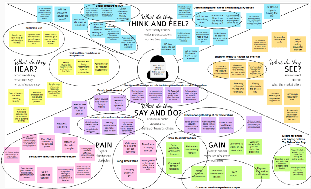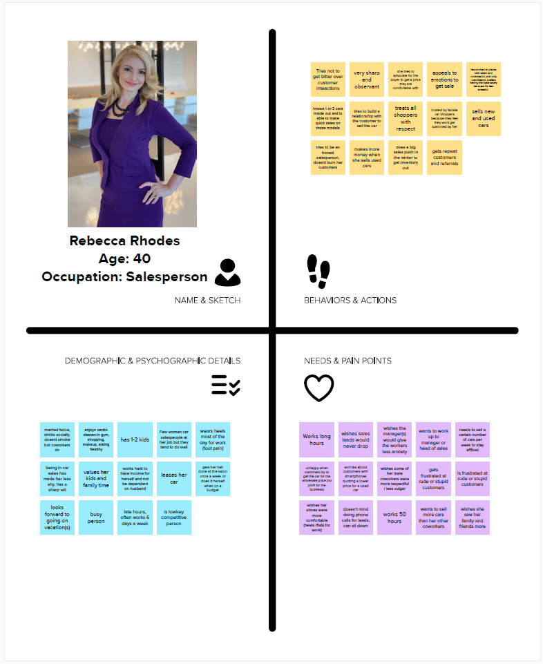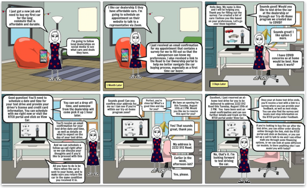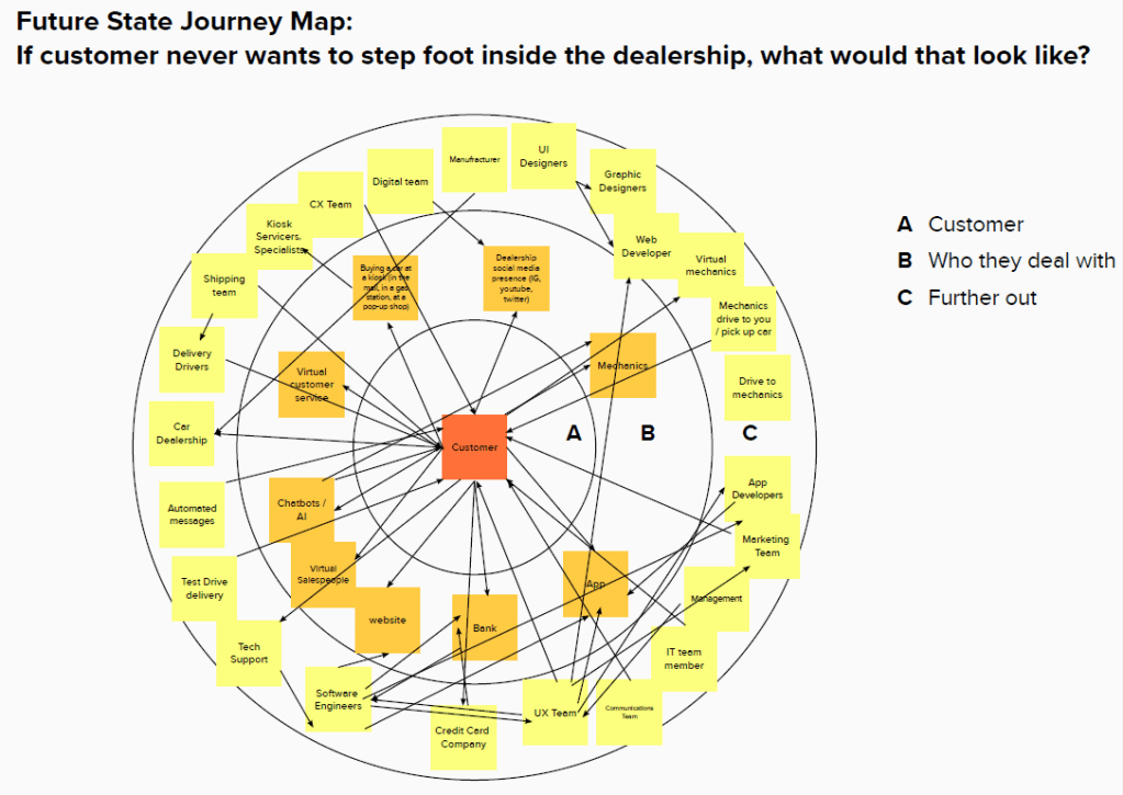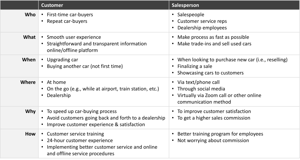 - Sales representatives and employees need to walk through the entire car-buying and owning experience because they need to understand what the customer really needs, resulting in more empathetic employees and sales representatives (and thus more satisfied customers).